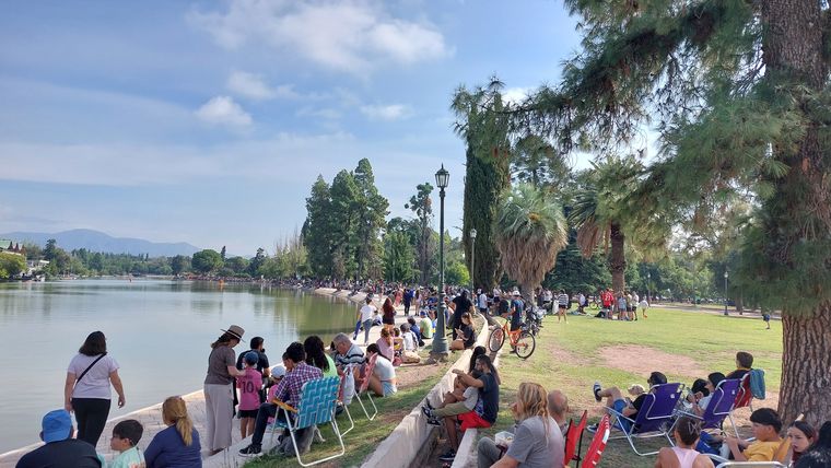 En ese sector también hubo presentaciones del grupo de folclore del Club Mendoza de Regatas, que acompañó la música con bailes tradicionales. Mientras tanto, la feria improvisada alrededor del lago ofrecía algodón de azúcar, helados, pororó, bebidas, churros, pastelitos y otros productos que fueron muy buscados durante toda la jornada.