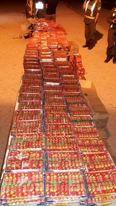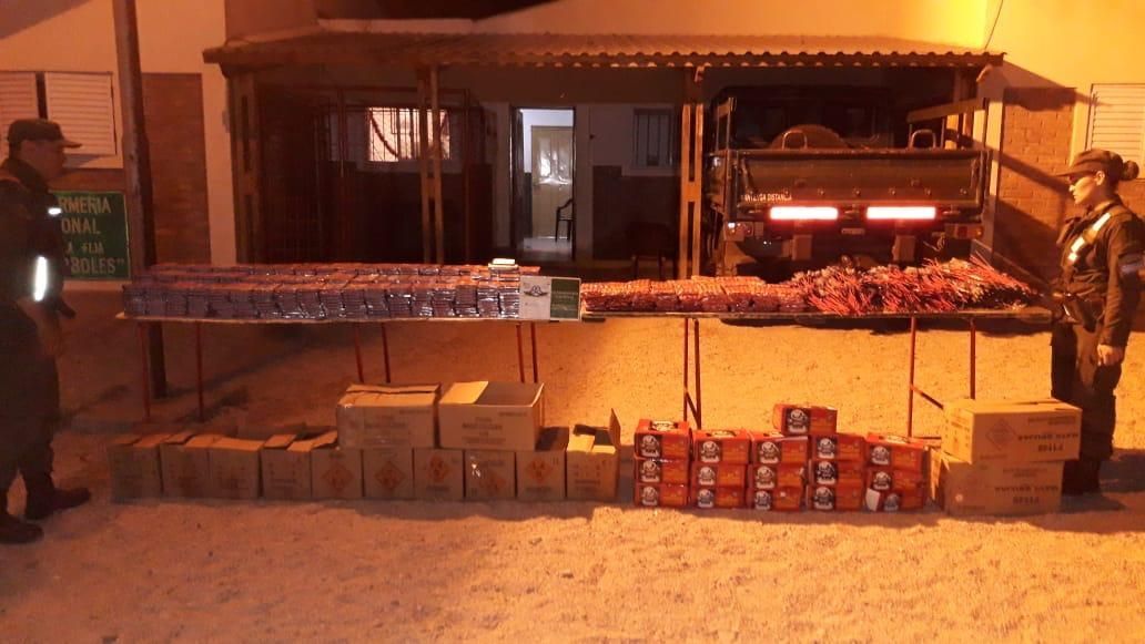 Gendarmería Nacional incautó 13.664 unidades de pirotecnia que estaban ocultas en cajas ubicadas entre el container y la baranda del semirremolque de un camión.