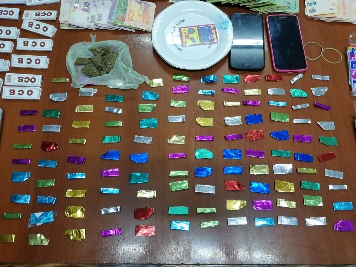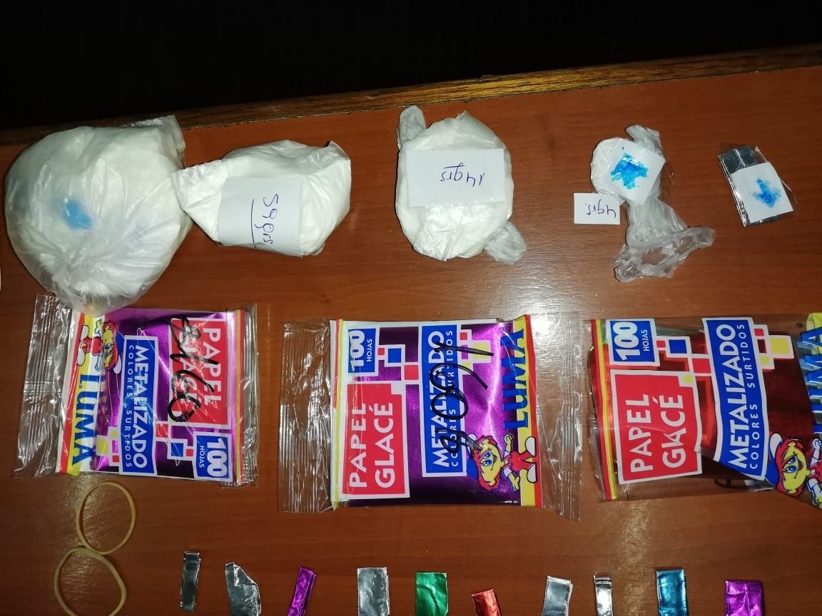 También se encontró 17 gramos de marihuana, una pistola calibre 32, 44 proyectiles calibre 32 y 50 calibre 22 y papeles glacé para armar porciones de cocaína y otros para armar porros.