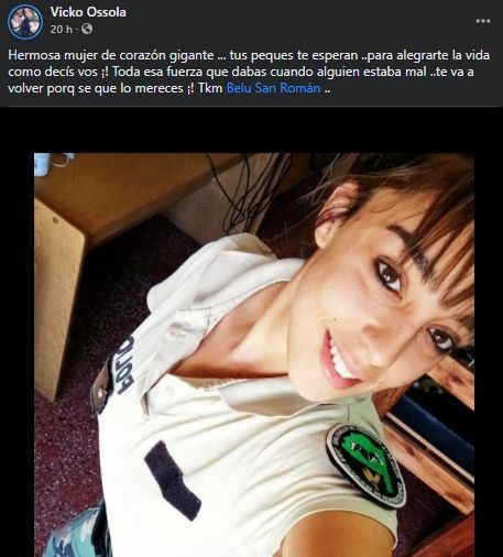 "Su estado es crítico", contó el periodista Diego San Román, tío de la joven. La mujer es madre de dos hijos, pero se encontraba sola cuando se disparó con su arma reglamentaria. A Belén la encontraron sus propios compañeros del Comando de Prevención Rural (CRP).