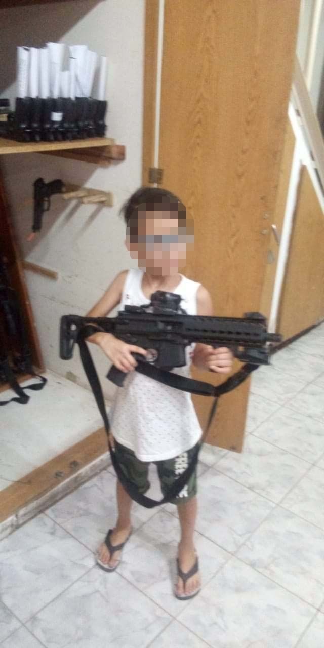 Se trata del jefe del departamento armamento del SPB, quien en la tarde de este miércoles publicó en su cuenta de Facebook tres fotos de sus pequeños hijos, durante una “visita al trabajo”, en las que se ve a los niños portando distintas ametralladoras, frente a un armario donde estaban almacenadas junto a otras armas de fuego.
