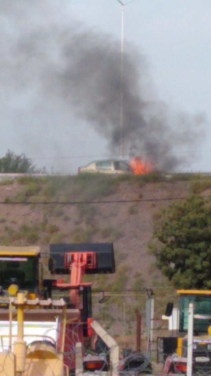 En estos días de cuarentena, la ciudad es pródiga en postales que tienen un toque apocalíptico. Como la que se vio hace instantes en uno de los ingresos a Mendoza. Sobre Acceso Sur, a la altura de Alsina, un auto gris empezó a arder en medio del paisaje algo desolado.
