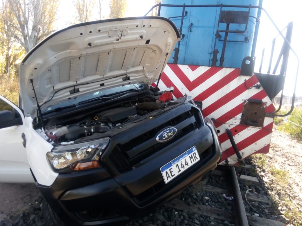 Un espectacular accidente se produjo este mediodía sobre las vías que atraviesan la calle Videla Castillo, cuando colisionaron una camioneta Ford F100 y un tren de cargas. Afortunadamente no hubo heridos, pero aseguran que el cruce no tiene barreras y carece de buena señalización.