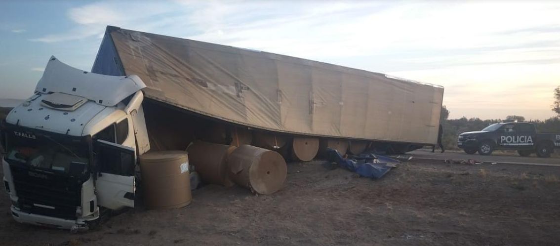 Espectacular vuelco de camiones en Santa Rosa
