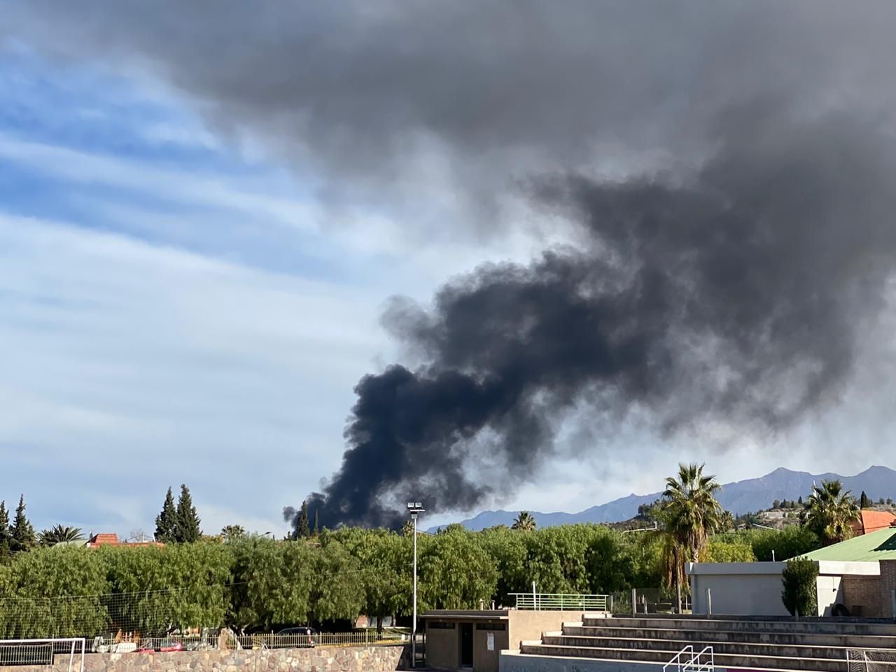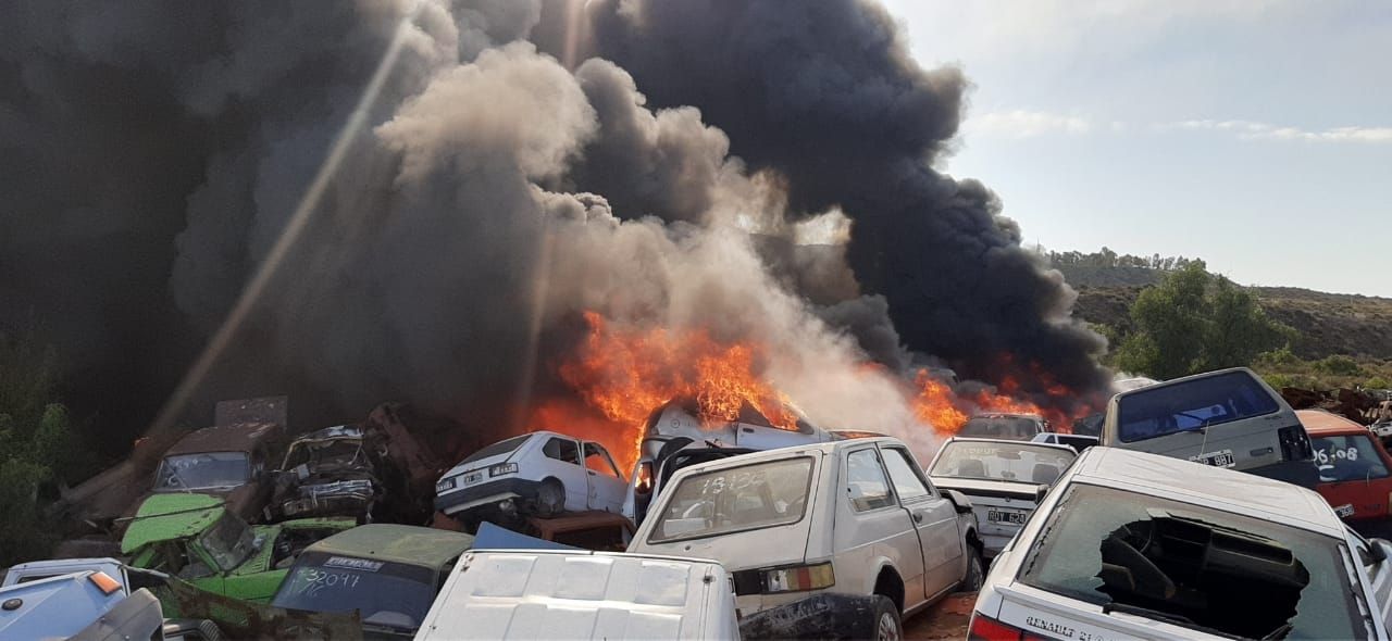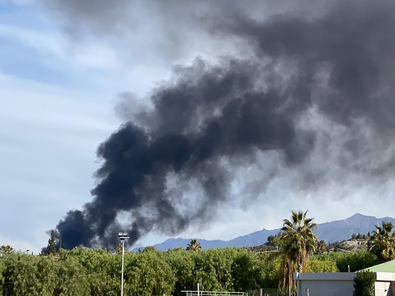 Una enorme columna de humo negro puso en alerta a los mendocinos esta tarde. Se trató de un incendio en la playa de secuestro de vehículos San Agustín, ubicada en el piedemonte.