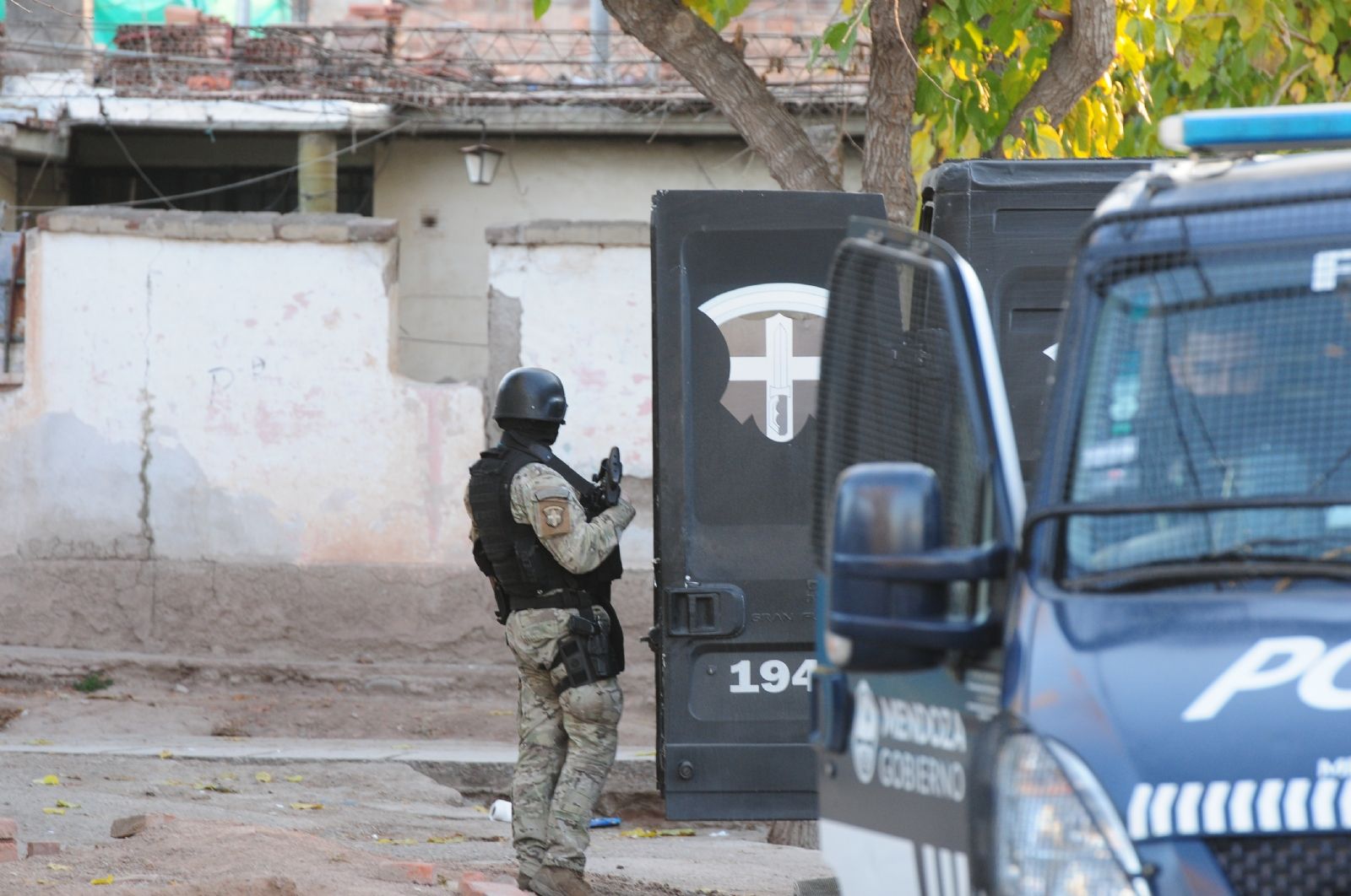 Entre los 37 allanamientos de las Fuerzas de Seguridad, los más intensos se desarrollaron en el Barrio La Gloria de Godoy Cruz y en el Barrio La Favorita de la Ciudad de Mendoza.