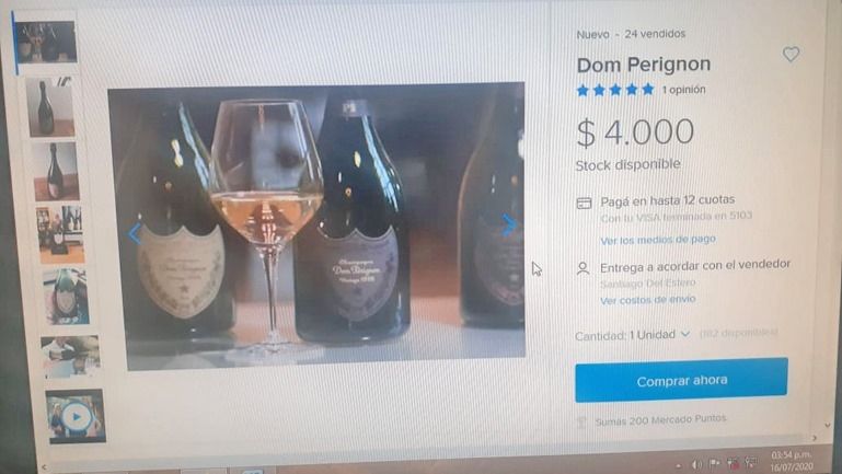El precio al que se comercializaba el champán también era llamativo. En la publicación en Mercado Libre la botella costaba $4.000, un valor irrisorio ya que el precio de la original arranca en los $15.000.