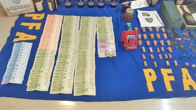 También se encontraron stickers ya recortados, corchos, alambres sostén de corchos, computadoras, pendrives y los sellos con tinta dorada para el lacrado de la botella, además de cajas de madera y de cartón utilizadas para la presentación de la bebida.