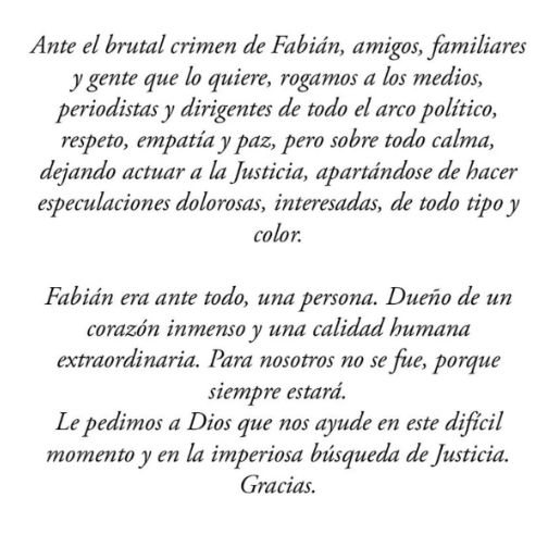 En tanto, la familia de la víctima salió a pedir respeto y solicitó "que se deje actuar a la Justicia":