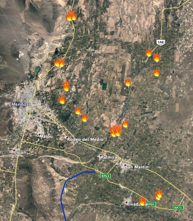Como confirma Guillermo Ferraris, del Plan Provincial de Manejo del Fuego, "desde principios de agosto se han detectado en Mendoza 531 focos de incendio. De ellos, unos 80 se produjeron en Alvear, mientras que hubo 82 en Lavalle. Es decir que estamos registrando estos eventos tanto en el sur como en el norte mendocino".
