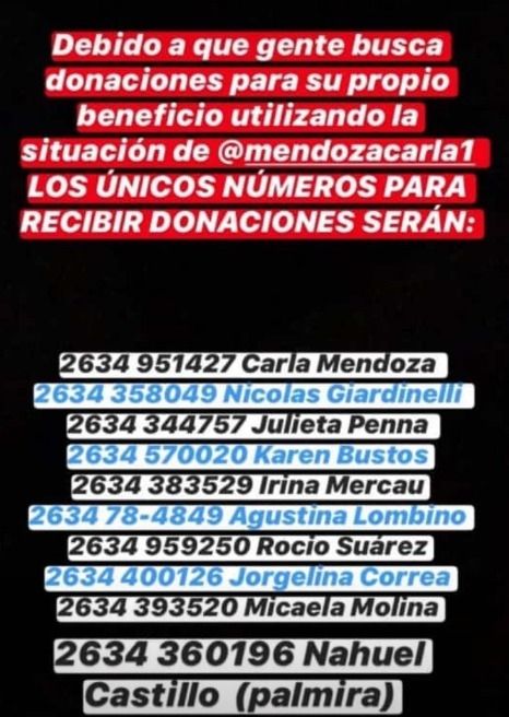 Entre tanto, los Oyola está pidiendo la ayuda de los mendocinos para salir adelante. "Estamos precisando dinero para pagar los medicamentos de mi mamá -contó Carla-. También nos hacen falta electrodomésticos, para poder recuperar medianamente nuestra vida anterior". Una heladera, un lavarropa o una cocina serán más que bienvenidos. Aquí, los teléfonos de contacto: