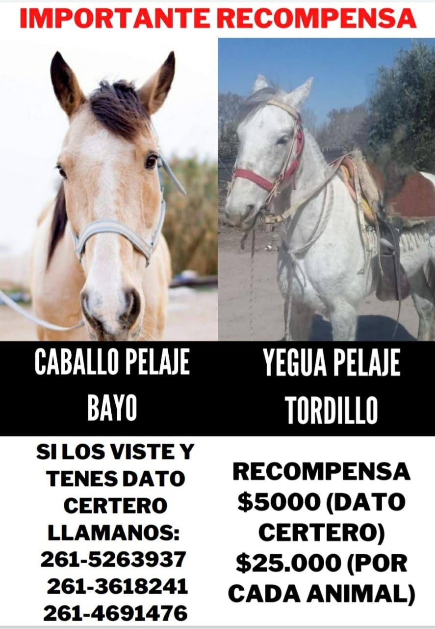Ofrecen recompensa en efectivo para encontrar a dos caballos robados