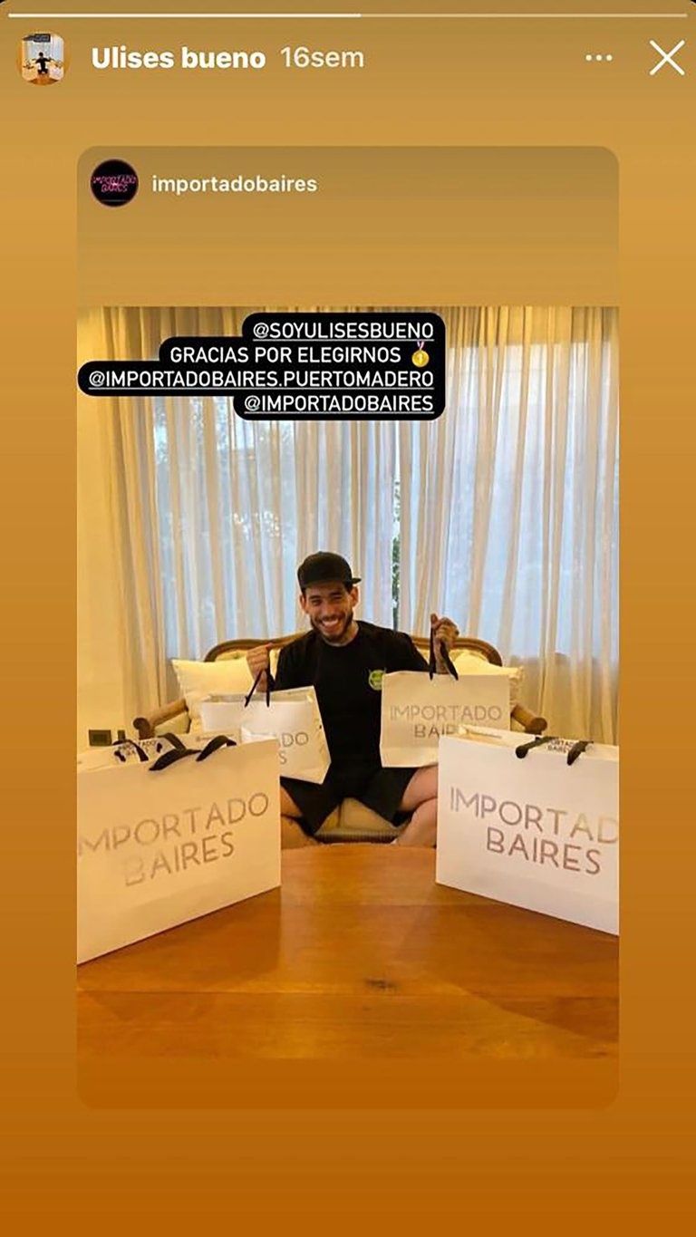 El cantante cordobés Ulises Bueno también posó con sus bolsas, feliz por su lote.