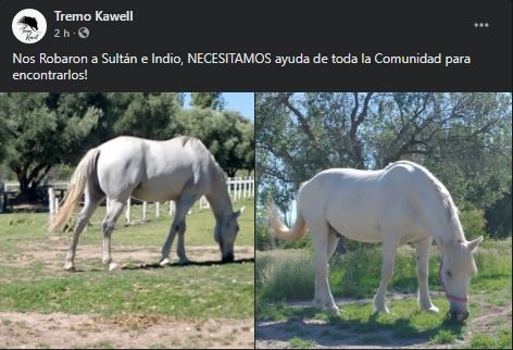 Desde la fundación pidieron colaboración en redes sociales para poder recuperar a los animales. Según indicaron desde la fundación, "Sultán" e "Indio" son los nombres de los caballos que robaron. Quienes tengan información acerca del paradero de los animales se puede comunicar a través de Facebook con la fundación.