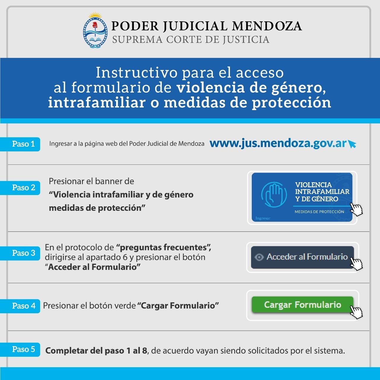Ya se encuentra habilitada en la página web del Poder Judicial la herramienta que permite denunciar situaciones de violencia de género, violencia intrafamiliar y pedir medidas de protección sin necesidad de trasladarse y mediante el uso de una computadora o un teléfono con datos de acceso a Internet.