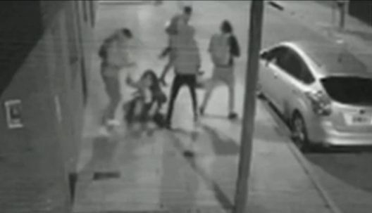 El violento hecho fue registrado por las cámaras de seguridad de la zona. En las imágenes, se ve a la mujer llegando a su casa y, cuando está abriendo la puerta, aparecen los cuatro malvivientes a atacarla.