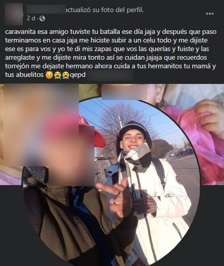 Entre sus allegados, nadie menciona la ocasión en que se produjo el deceso ¿Quién era el pibe? Seguramente, se sabrá poco. Andaba por barrios platenses, especialmente Los Hornos. Algo más -apenas- permiten ver las imágenes de las redes.