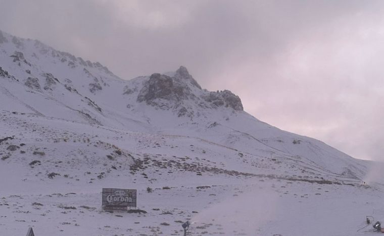 Esta tarde una nevada sorprendió a los turistas en Las Leñas y registraron el complejo cubierto de nieve. Mirá la cámara en vivo.