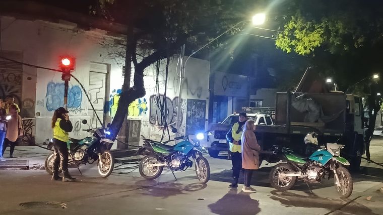 Efectivos policiales y preventores llegaron rápidamente al lugar para establecer un perímetro de seguridad. Los agentes cortaron completamente el tránsito vehicular y peatonal en ambas arterias para evitar accidentes. La medida preventiva se mantuvo hasta que técnicos especializados pudieran evaluar la situación del cableado desprendido.