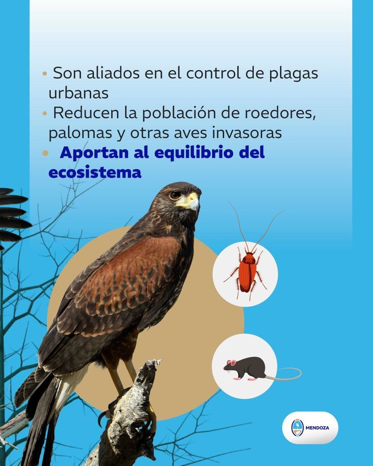 El Gobierno de Mendoza publicó una guía para actuar frente a la presencia de gavilanes mixtos. Llaman a no agredirlas y respetar su espacio de cría.