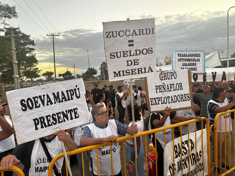 Por primera vez, los trabajadores de viñas y bodegas se manifestaron en el ingreso de la Fiesta de la Cosecha. Un importante grupo de persona se manifestó en el ingreso al predio del aeropuerto para pedir mejoras salariales, ya que los sueldos básicos son de $500.000.