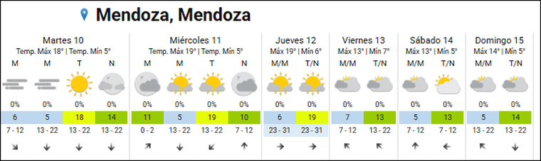 ALF PONCE MERCADO / MDZEl pronóstico para este martes 10 de junio en Mendoza anticipa condiciones similares a las del lunes, aunque con un fenómeno puntual que podría afectar el tránsito matutino: se espera neblina en el Gran Mendoza y parte de Luján de Cuyo, especialmente durante las primeras horas del día, según el Servicio Meteorológico Nacional.