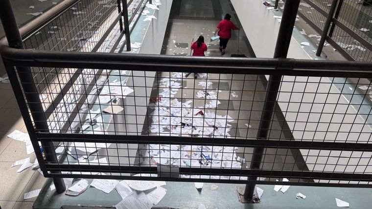 Las autoridades aclararon que no habrá diferenciación entre quienes rompieron mobiliario y quienes solo arrojaron papel picado. La sanción es igual para todos los involucrados.