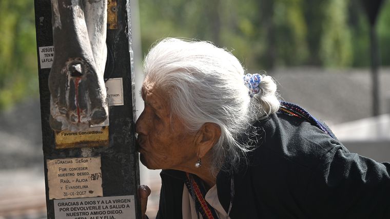 La mujer contó que asiste cada año y que elige el jueves por una cuestión práctica: “Mañana hay mucha gente y no puedo estar mucho parada”. Aun así, definió su visita como un momento íntimo: “Le agradezco. Viene a agradecer, a charlar con él”.