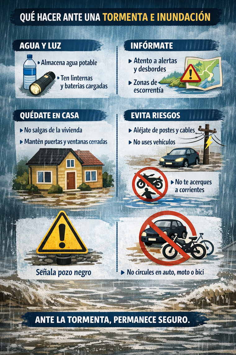 - Para prevenir, hay que mantenerse informado sobre desbordes que pueda haber, sobre todo en zonas de escorrentía como el pedemonte y cercanías de cauces aluvionales.