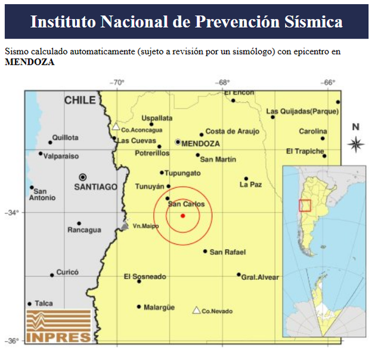 Cabe destacar que horas antes, en Uspallata, se había producido otro sismo, cuya magnitud fue de 2.8 y con profundidad de 116 kilómetros.