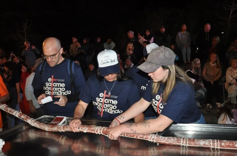 Este fin de semana, se confirmó que el nuevo salame alcanzó los 487,22 metros de longitud, superando los 401,73 metros logrados en la edición anterior y consagrándose como el más grande del mundo.