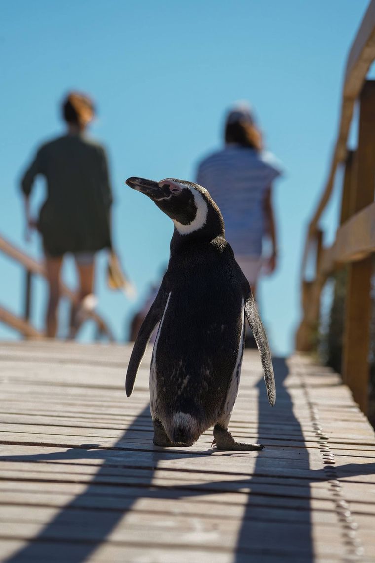 A 180 kilómetros al sur se encuentra Punta Tombo, una reserva de 210 hectáreas que alberga la mayor colonia continental de pingüinos de Magallanes. Su sendero de 3 kilómetros permite observarlos desde miradores preparados especialmente. El área cuenta con normas estrictas de preservación: mantener dos metros de distancia, no interactuar con los animales y respetar los circuitos habilitados.