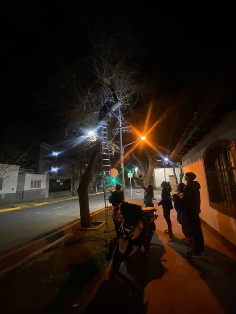Según indican los vecinos, el gato se encontraba varado en la cima del árbol al menos durante algunos días. Uno de ellos llamó a los Bomberos para que logren intervenir con sus escaleras. Sin embargo, los efectivos no lograron bajarlo porque, temeroso, el animal se subió aún más arriba.