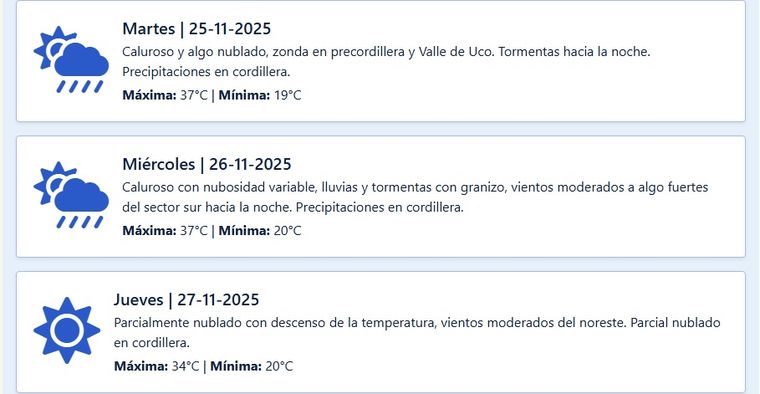 Este martes 25 de noviembre de 2025 se perfila como una jornada sofocante en Mendoza, con viento zonda, tormentas intensas en el sur.