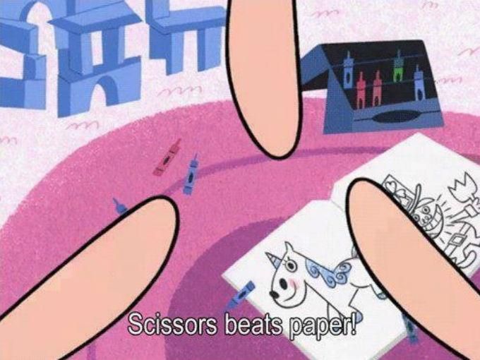 Las "Chicas Superpoderosas" jugando al "Piedra, papel o tijera".