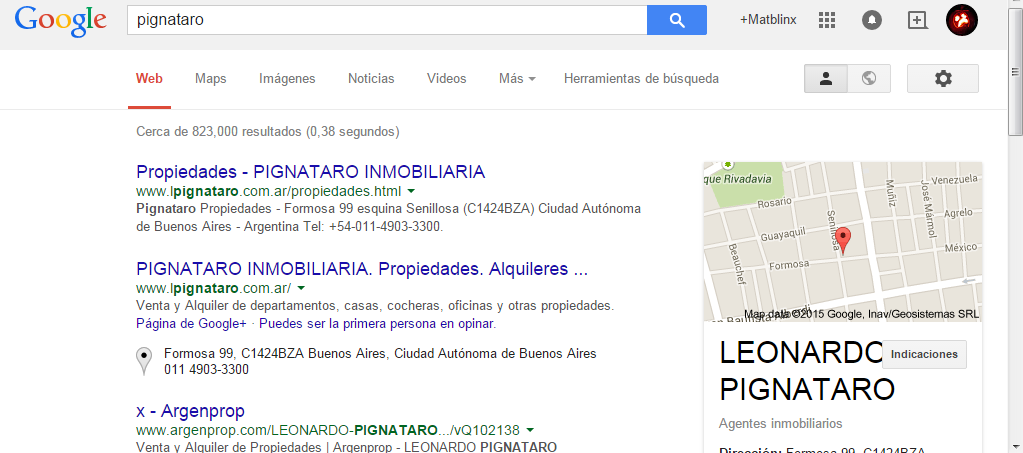 5. Ahora, busquemos el apellido "Pignataro" en Google: corresponde a una reconocida inmobiliaria.