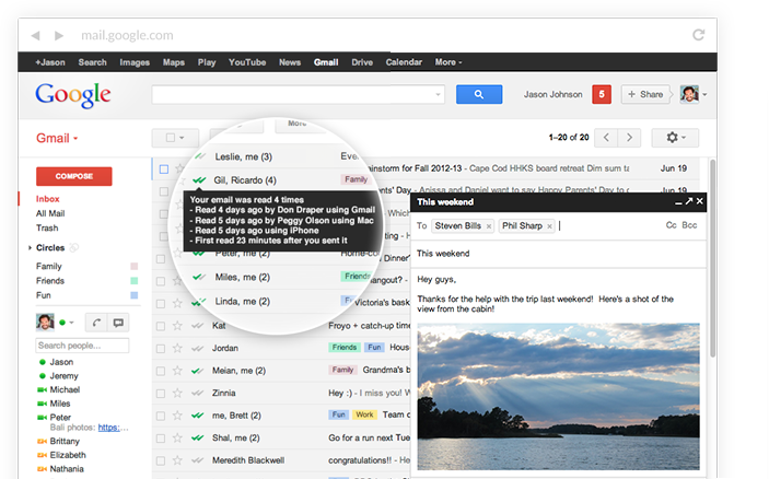 Este rastreador de correo añade elementos visuales a la interfaz de Gmail para web con los que sabrás qué elementos enviados ya fueron vistos por el destinatario. Incluye comandos de fácil acceso desde el buscador y se puede desactivar por completo.