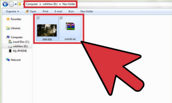 4. Arrastramos y colocamos en la carpeta que creamos al principio ambos archivos, nuestros rar. creado y la imagen que elegimos