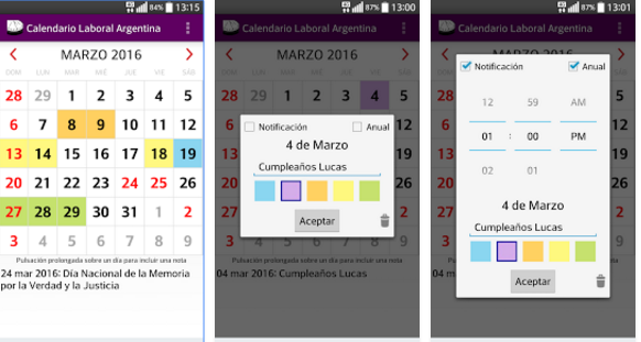 Argentina Calendario 2015: esta aplicación a diferencia de las anteriores, te deja añadir notas a cada una de las fechas. [Descargar]