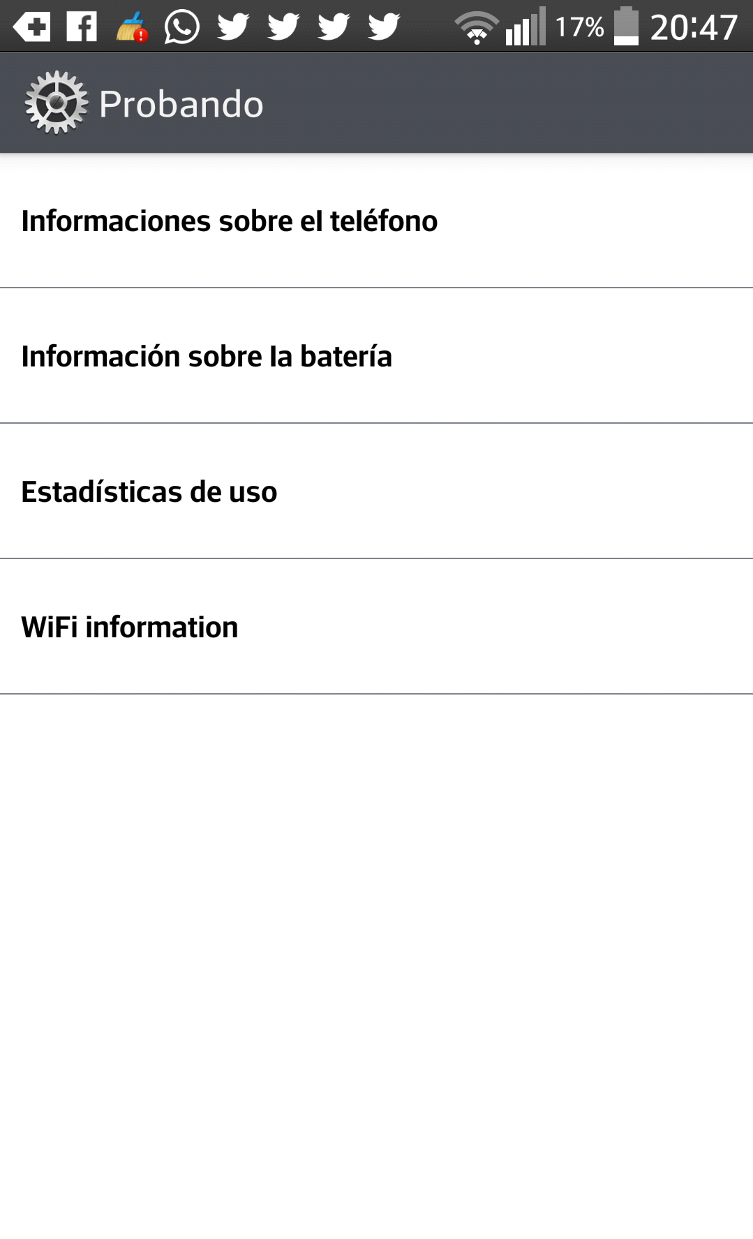 Una vez tecleado el último asterisco se nos abrirá el menú de pruebas Android en el que vamos a tener acceso a información y configuraciones ocultas pensadas para ser realizadas únicamente por los desarrolladores y técnicos especializados.