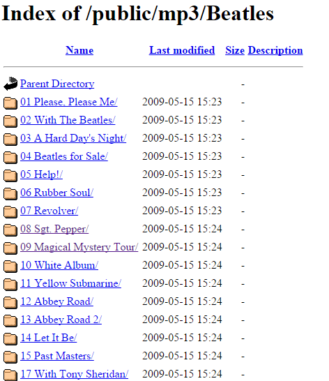 Las carpetas son discos y en cada una de ellas se encuentran todos las canciones en formato mp3. Para descargar cada canción es simple:
