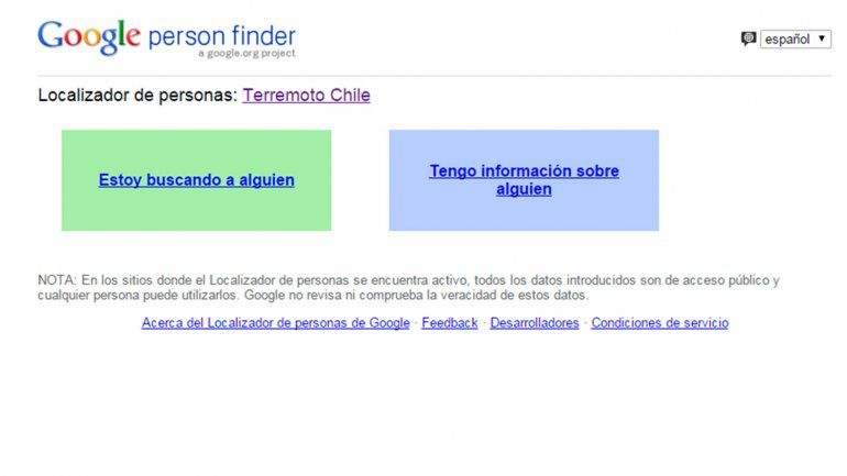 El buscador puso a disposición del público Person Finder, que tiene como objetivo ubicar a aquellos individuos de los que no se tiene información.