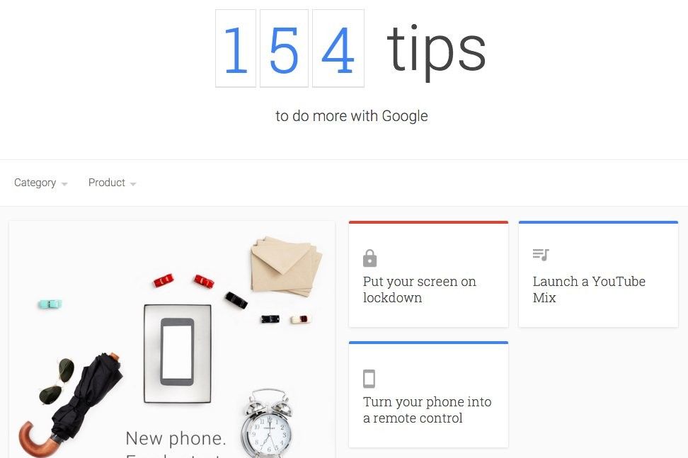 Eso es precisamente lo que podrás encontrar en Google Tips, una web de Google que reúne nada menos que 154 trucos, consejos y pequeños tutoriales destinados a enseñarte a sacar el máximo partido a todos los productos de Google, desde el buscador o el sistema operativo Android hasta las apps de Google Docs.