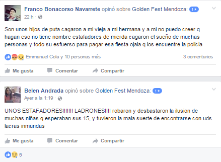 Conocido los casos de estafas por parte de Golden Fest Mendoza, la fanpage de la empresa se ha plagado de comentarios negativos, por lo que está siendo sepultada por la red social y es posible que tome cartas en el asunto.