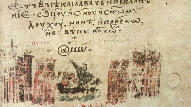 Pero la referencia más antigua descubierta hasta que el símbolo @ es una religiosa. Aparece en una traducción al búlgaro de una crónica griega que data de 1345.