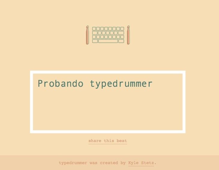 A pesar de que no nos encontramos ante una herramienta con opciones avanzadas, el uso de Typedrummer puede resultar interesante en más de una ocasión. Tal y como podés comprobar, se trata de un sencillo sitio web que se encarga de transformar el teclado de nuestro ordenador en una batería. De esta forma, todo lo que escribamos se transforma en sonido (podemos utilizar la barra espaciadora para introducir una breve pausa). Una vez hayamos terminado, es posible compartir el resultado a través de las redes sociales.