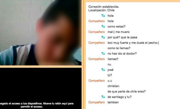 El niño parecía ser menor de 15 años, su escuela se encontraba cerrada y por eso tenía tiempo para chatear. Lamentablemente no pude hablar más con él, ya que me dijo que tenía que irse. Hubiera sido bueno advertirle de los riesgos del sitio web y el tipo de personas con las que se podía encontrar.
