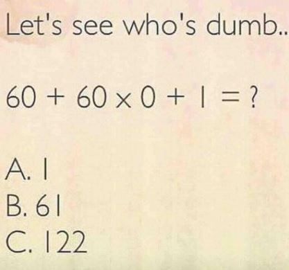 La ecuación es la siguiente: 60 + 60 x 0 + 1 = ¿cuánto es?