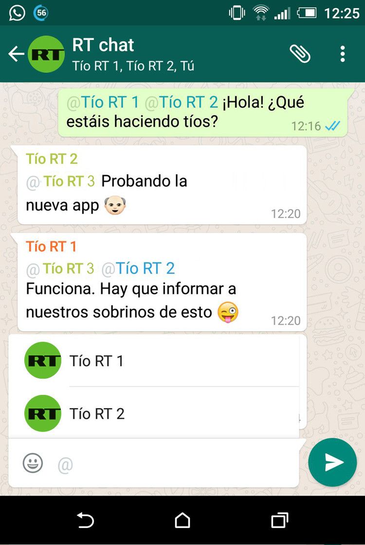 ste martes, y sin anuncio previo, el servicio de mensajería instantánea WhatsApp ha incorporado las menciones a los integrantes de las conversaciones grupales, tanto en la versión que funciona con el sistema operativo iOs como en Android.