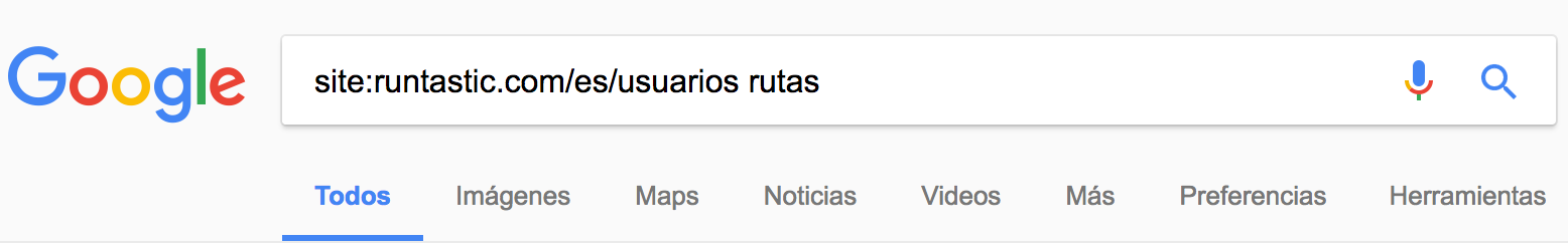 Básicamente le estoy pidiendo a Google que busque en el dominio de usuarios de Runtastic todas las rutas.